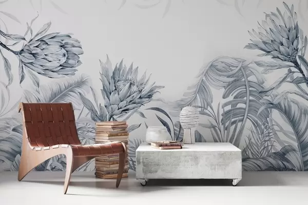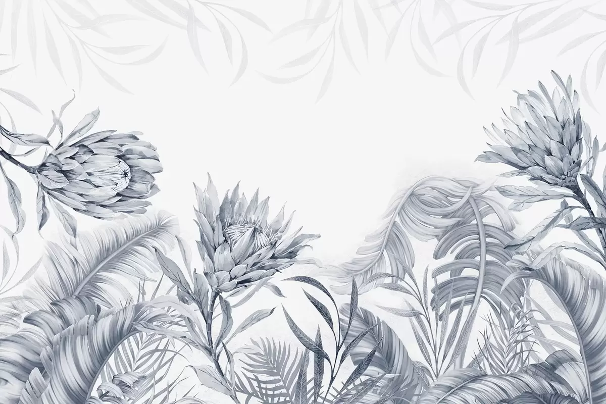 Murais de parede Protea entre folhas tropicais, tons de verde Nr. w03952v2
