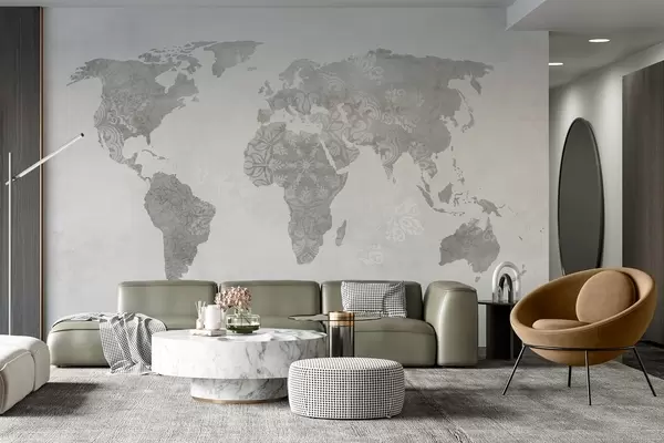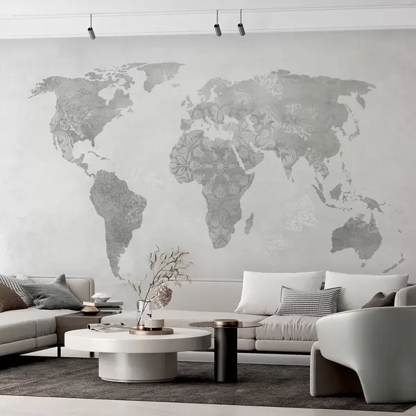 Murais de parede Mapa-mundo com padrão, tons monocromáticos Nr. w03954v1