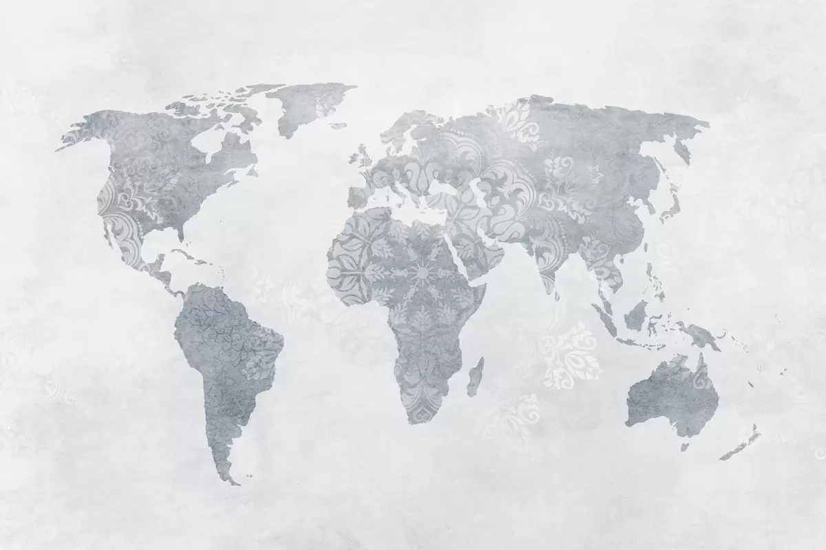 Murais de parede Mapa-mundo com padrão, tons azuis Nr. w03954v2