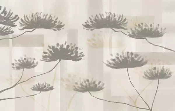 Murais de parede geometria texturada em tons de bege e creme com flores de guarda-chuva estilizadas Nr. w03960