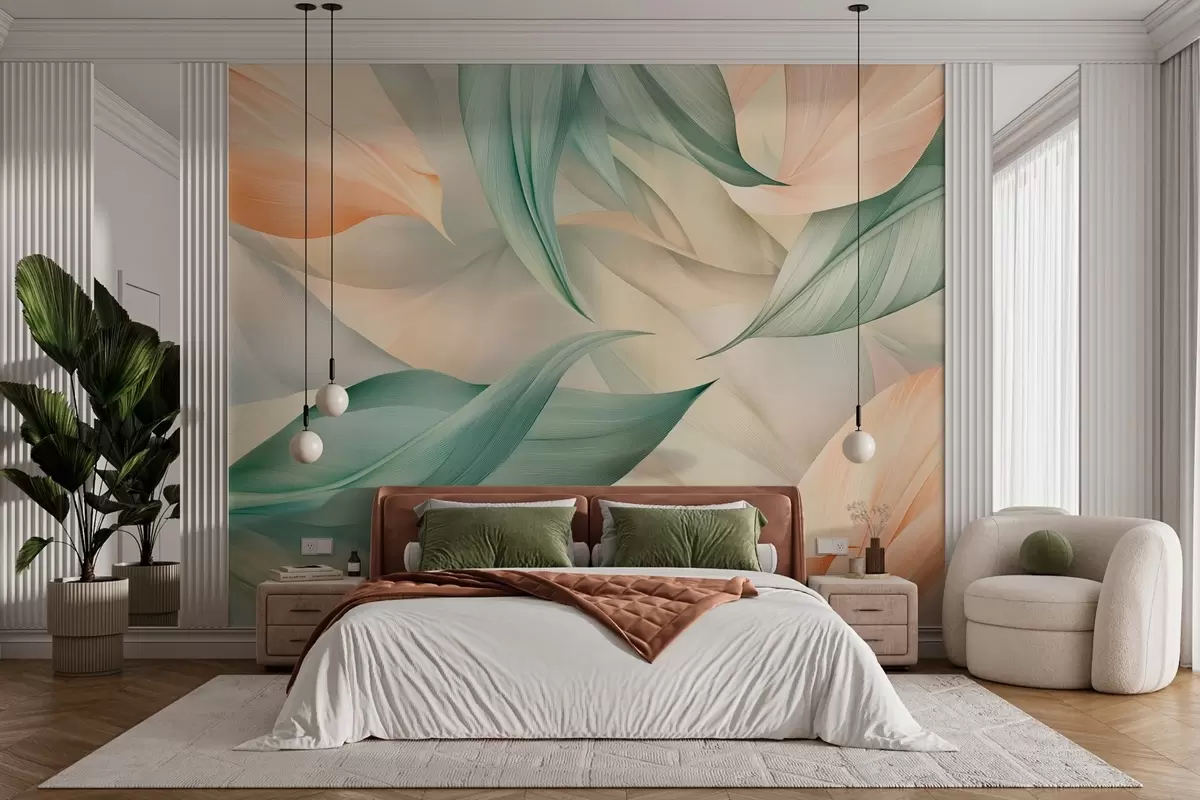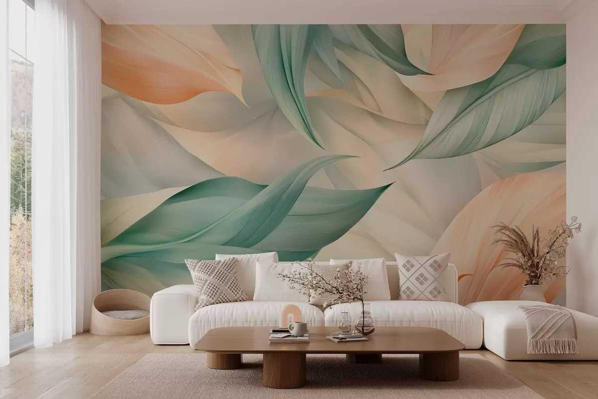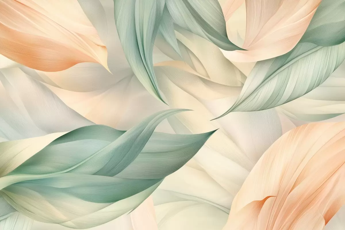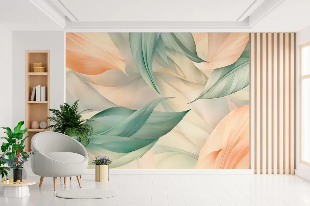 Murais de parede folhas tropicais exóticas em delicados tons de pêssego e verde Nr. w03962