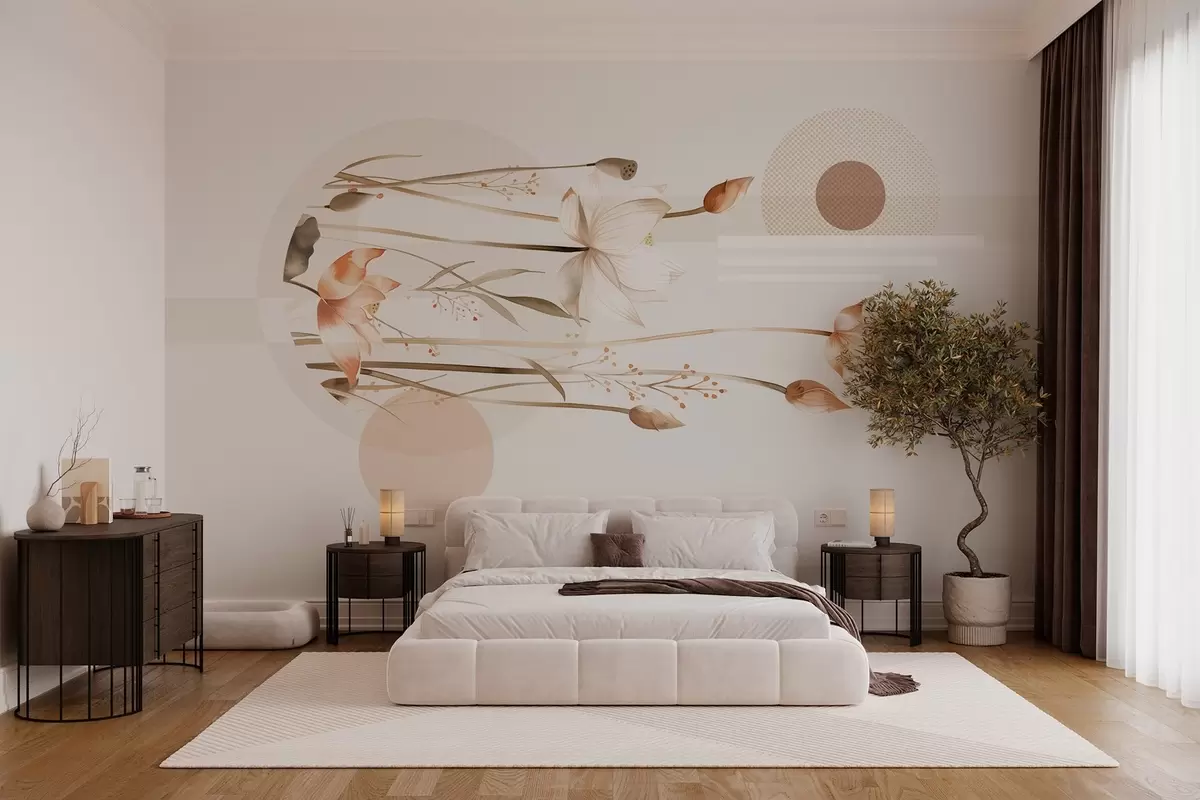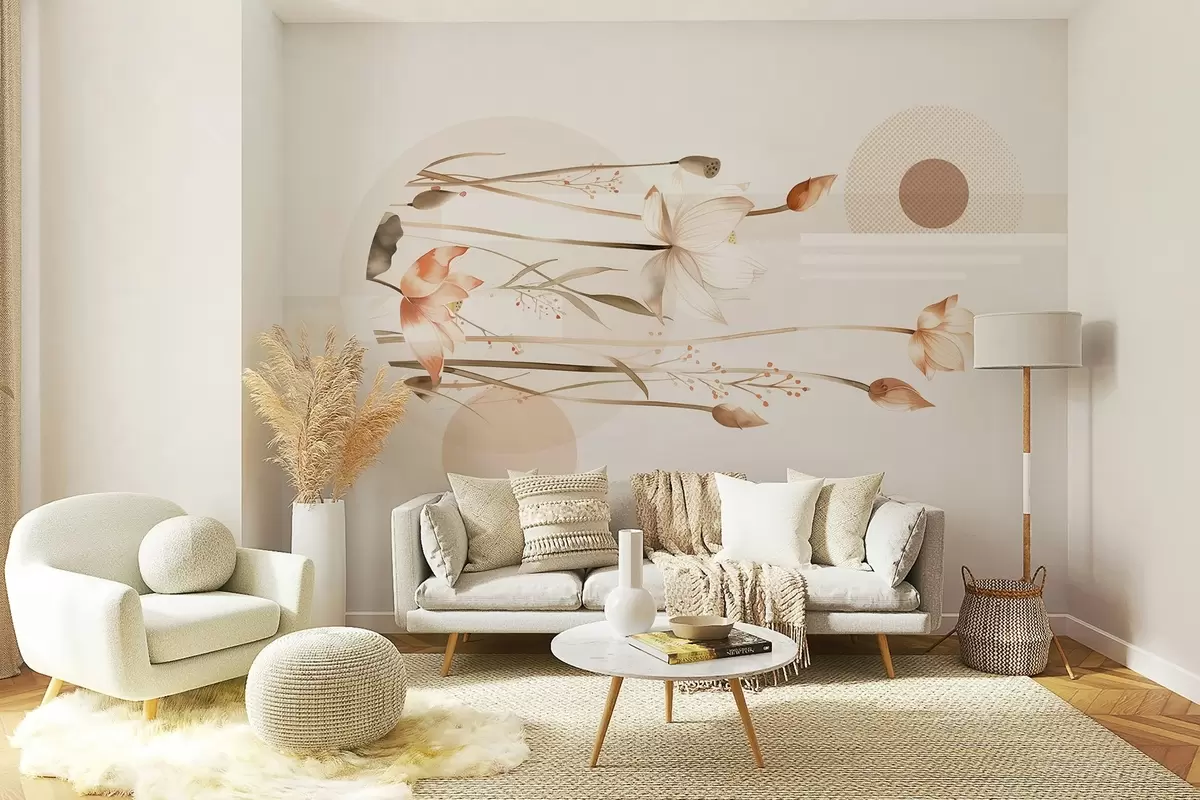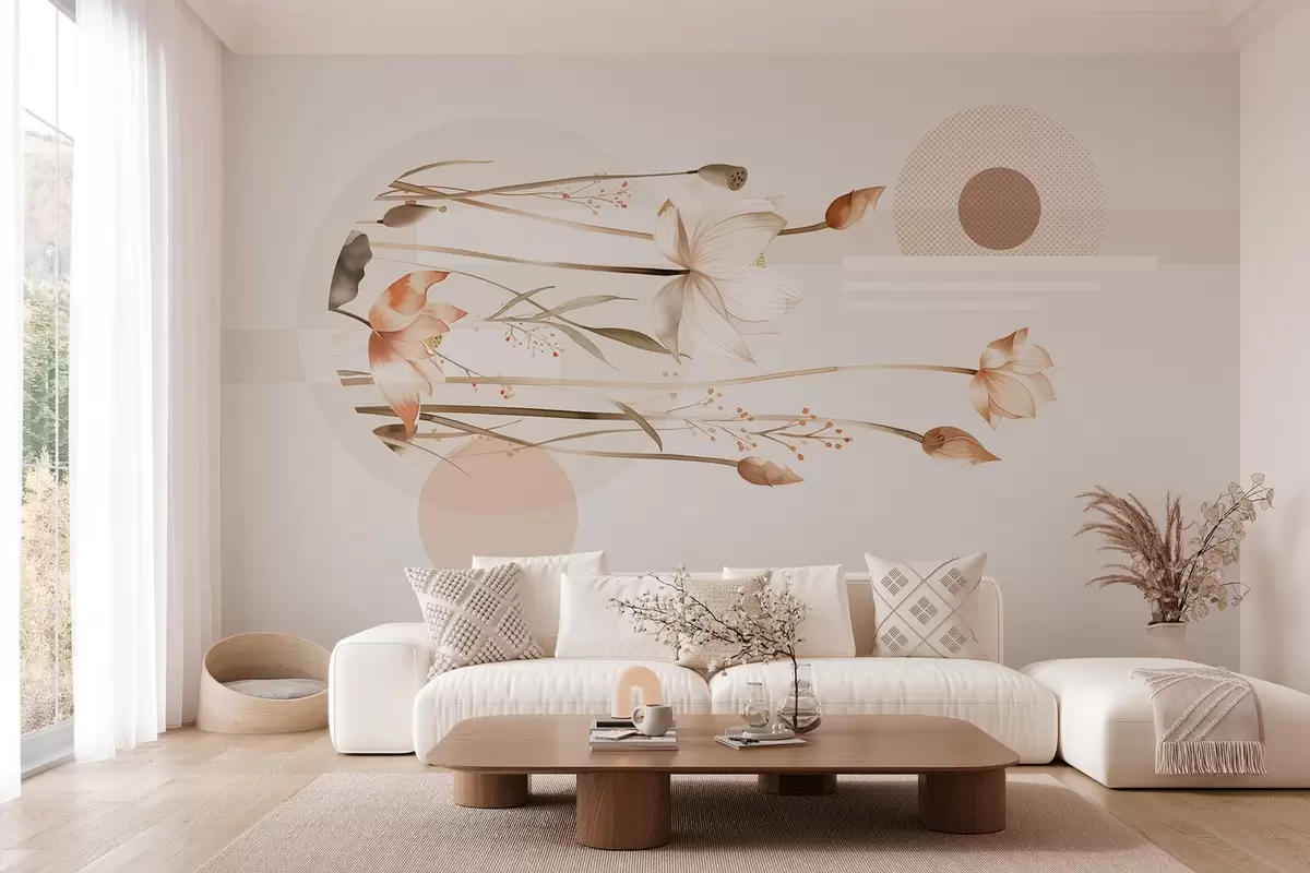 Murais de parede lírios pastel e geometria boho Nr. w03964