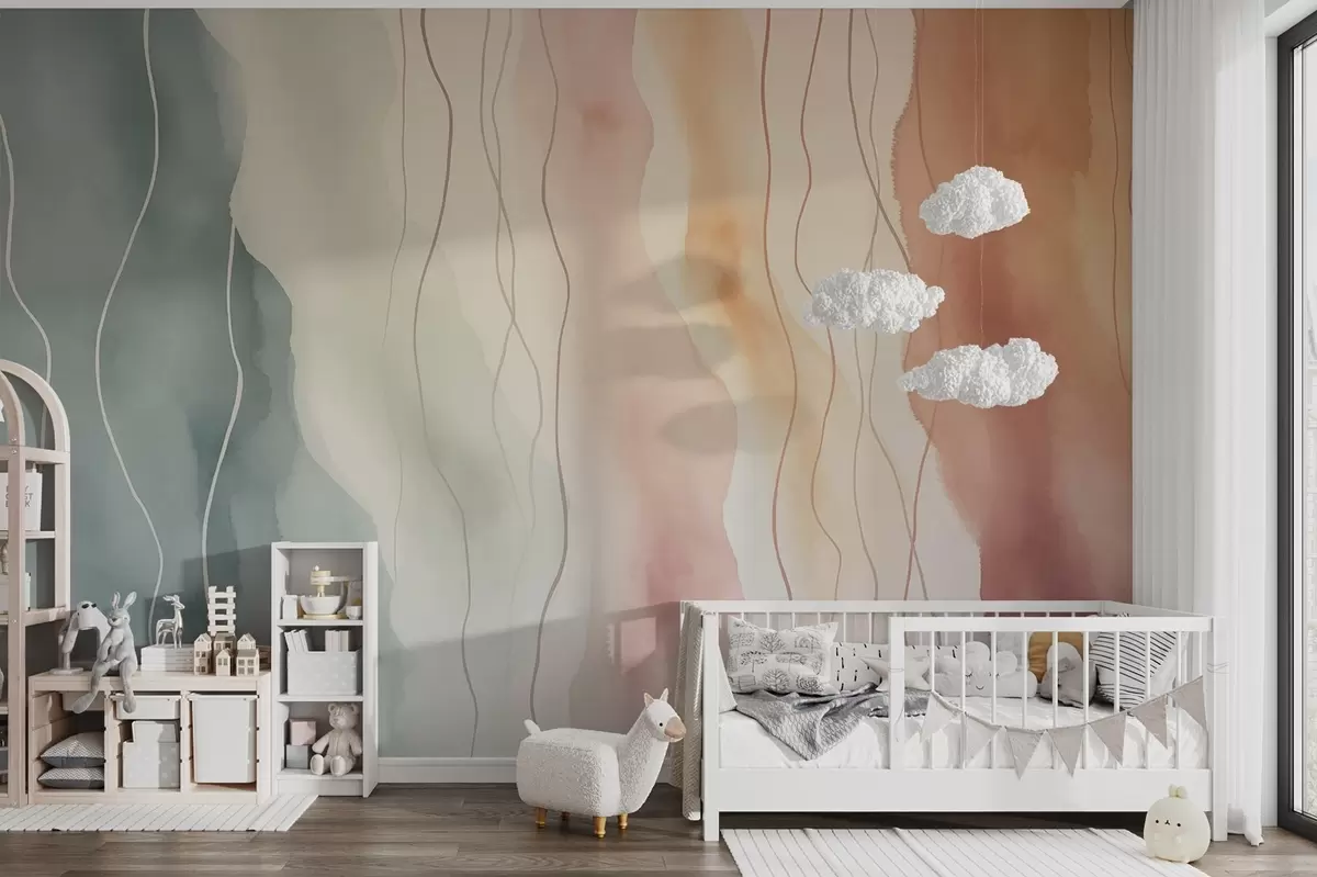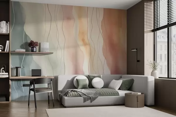 Murais de parede Ondas abstractas de aguarela em cores quentes e frias Nr. w03989