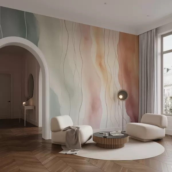 Murais de parede Ondas abstractas de aguarela em cores quentes e frias Nr. w03989