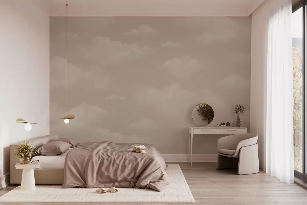 murais de parede Nuvens cremosas sobre um fundo bege claro w03994