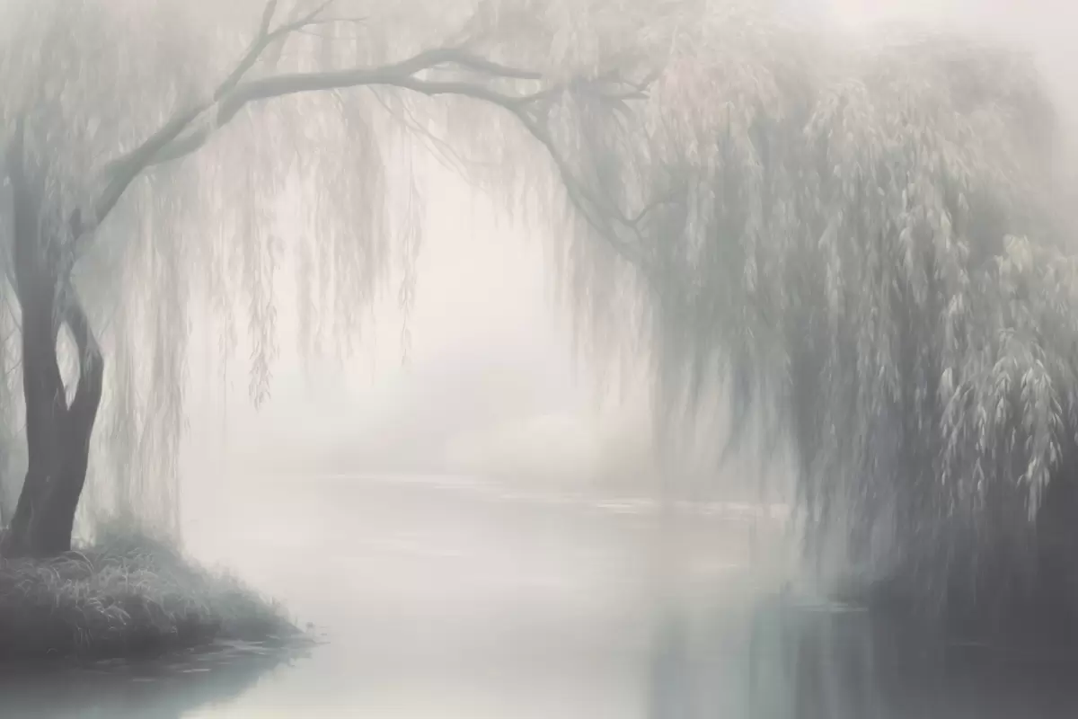Murais de parede Banco de salgueiros místico no nevoeiro da manhã Nr. w03995