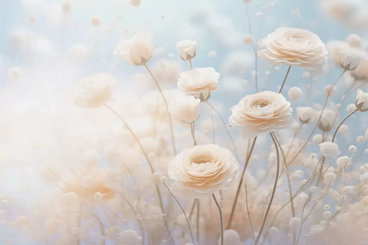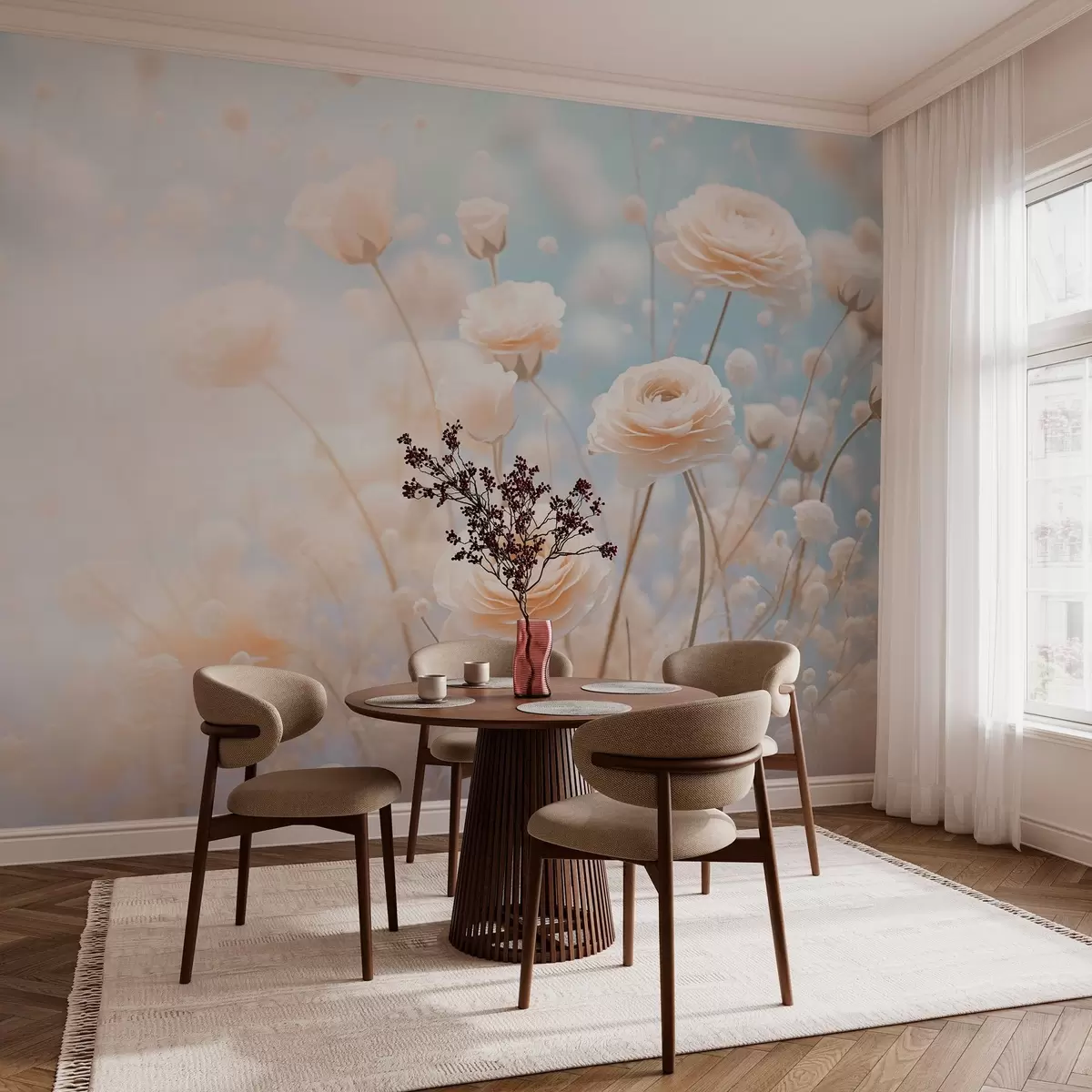 Murais de parede Delicadas rosas creme sobre um fundo azul claro Nr. w03997