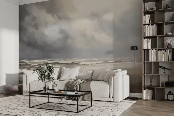Murais de parede Mar à chuva, tons de cinzento e bege, composição atmosférica Nr. w03998