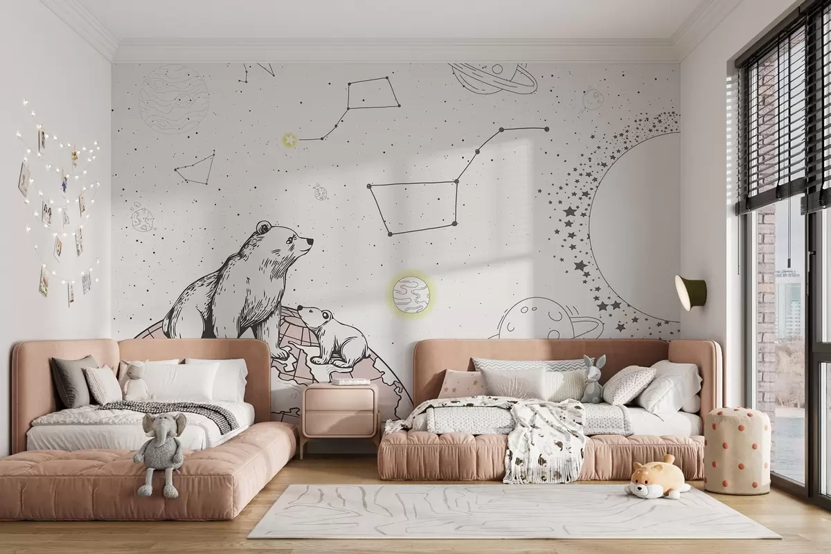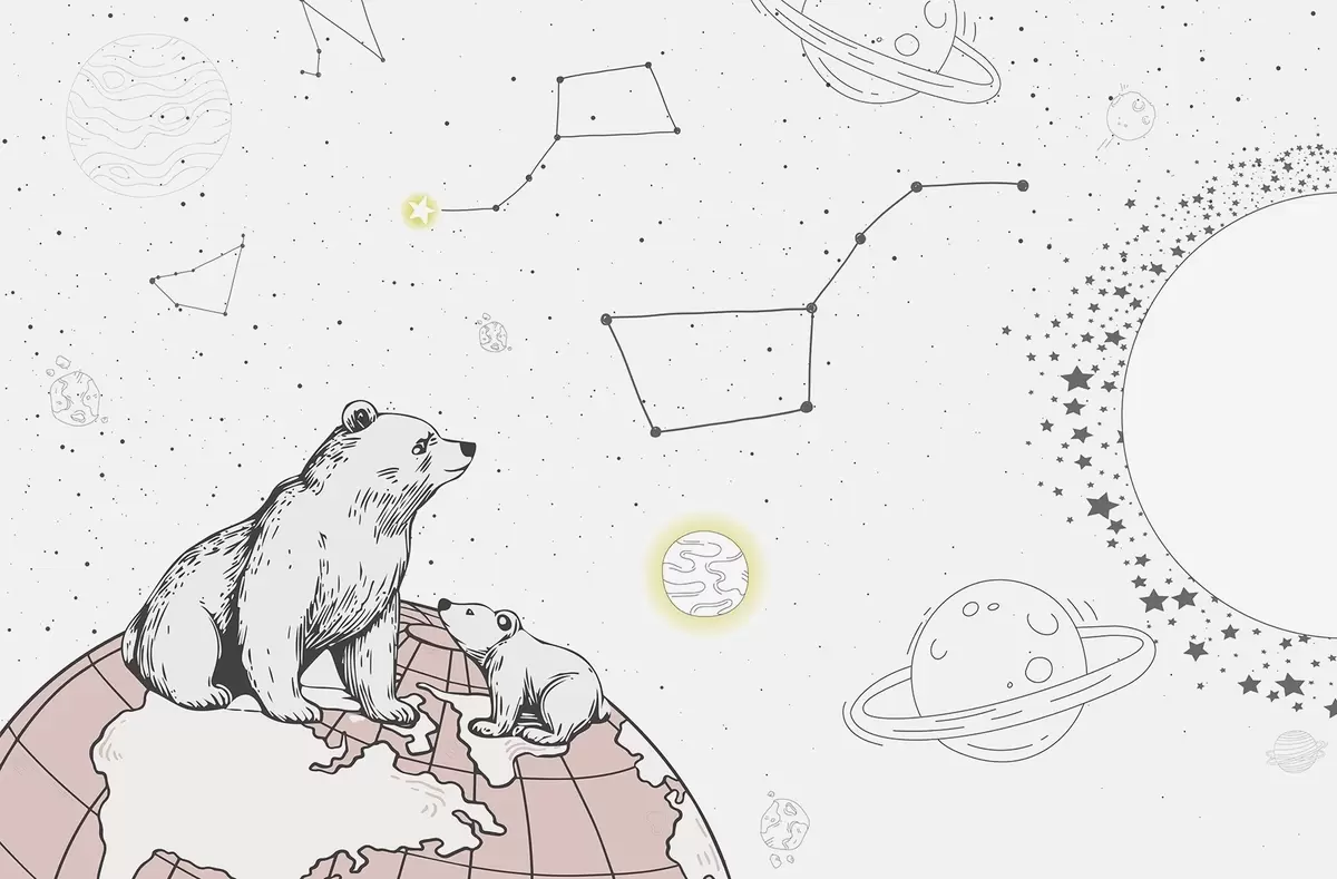 Murais de parede Ursos e estrelas num fundo castanho, tema de astronomia Nr. w04002v2
