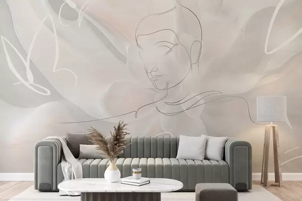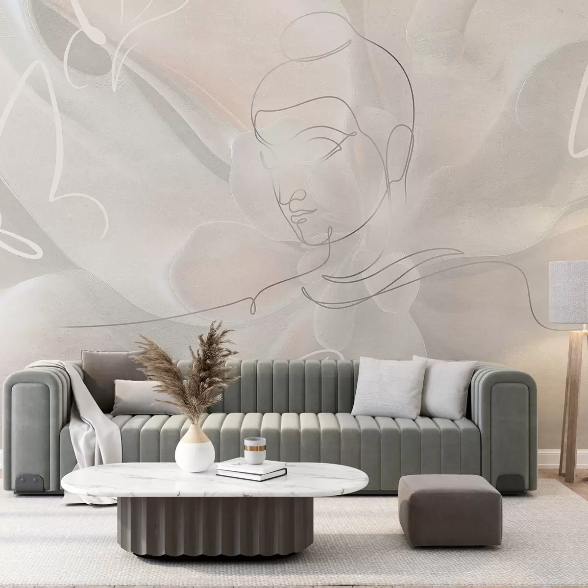 Murais de parede Abstração floral com desenho de linhas de Buda, cores bege Nr. w04004