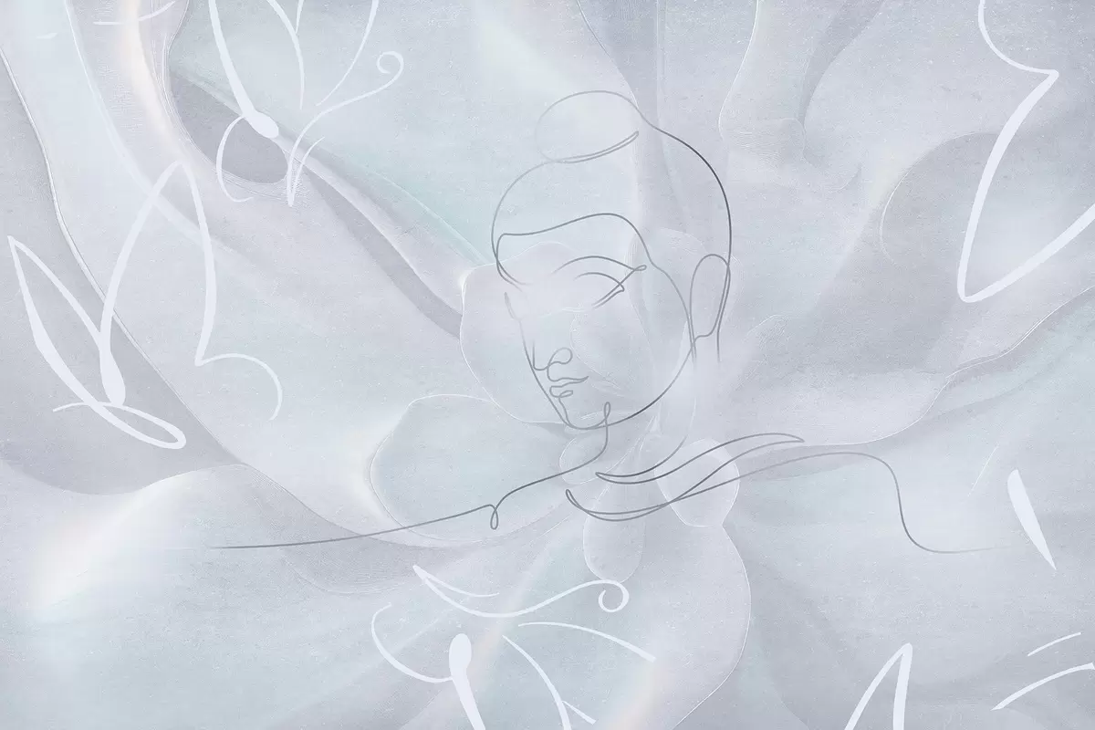 Murais de parede Abstração floral com desenho de linhas de Buda, cores azuis Nr. w04004v1