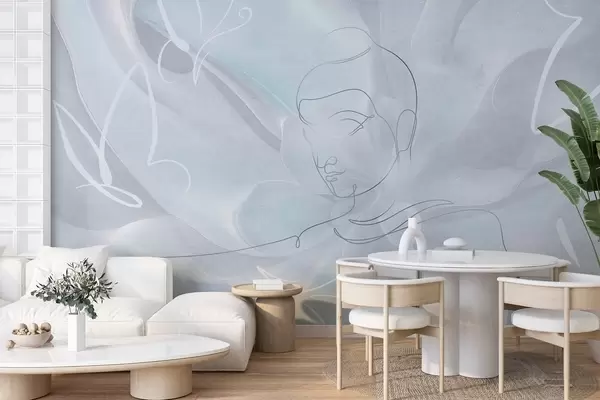 Murais de parede Abstração floral com desenho de linhas de Buda, cores azuis Nr. w04004v1