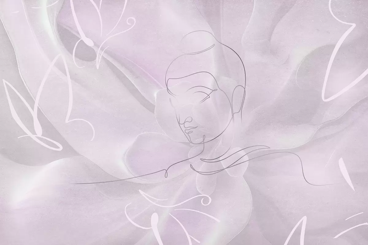 Murais de parede Abstração floral com desenho de linhas de Buda, cores rosa Nr. w04004v2