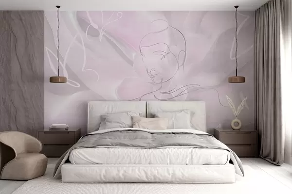 Murais de parede Abstração floral com desenho de linhas de Buda, cores rosa Nr. w04004v2