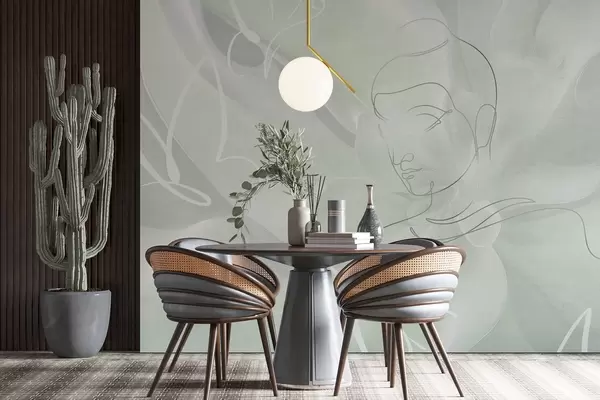 Murais de parede Abstração floral com desenho de linhas de Buda, cores verdes Nr. w04004v3