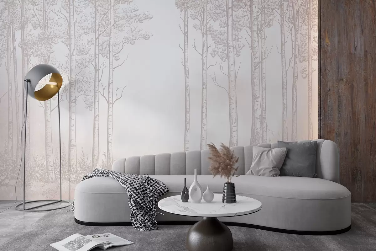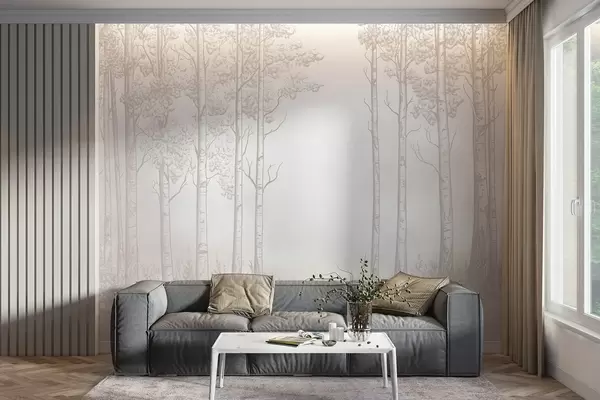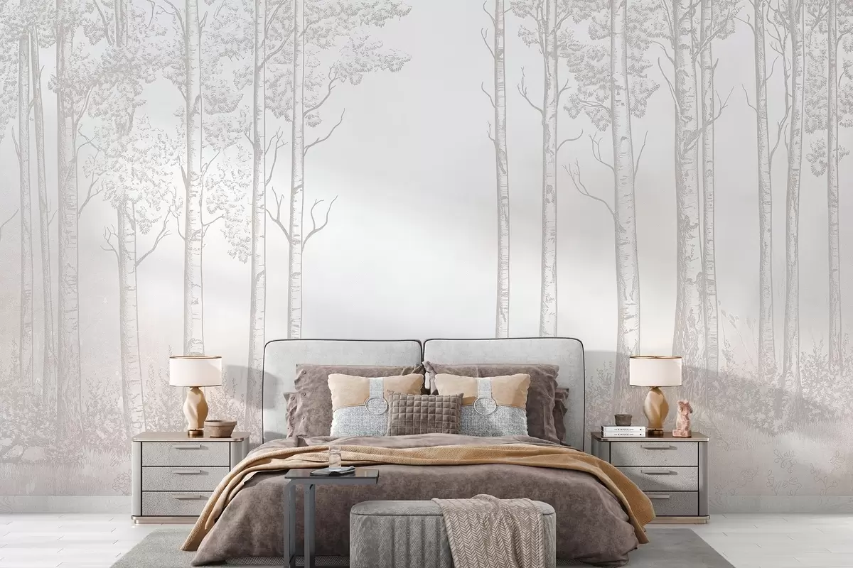 Murais de parede Floresta com bétulas, minimalismo, natureza, paleta de cores bege Nr. w04009v3