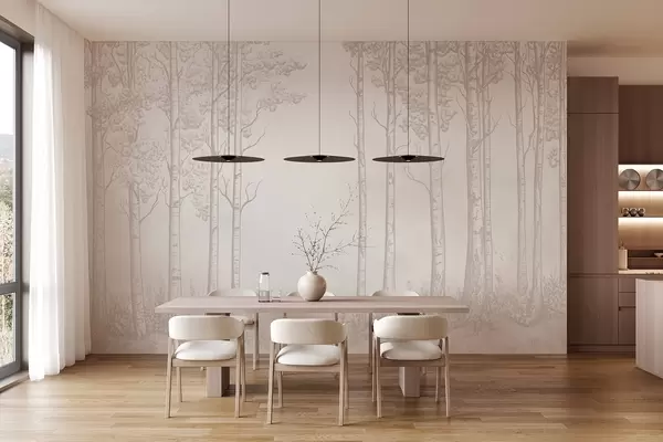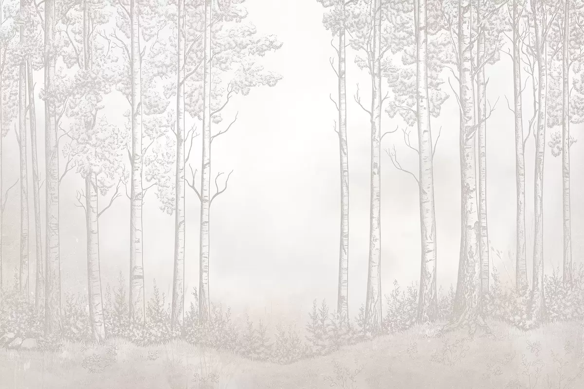 Murais de parede Floresta com bétulas, minimalismo, natureza, paleta de cores bege Nr. w04009v3