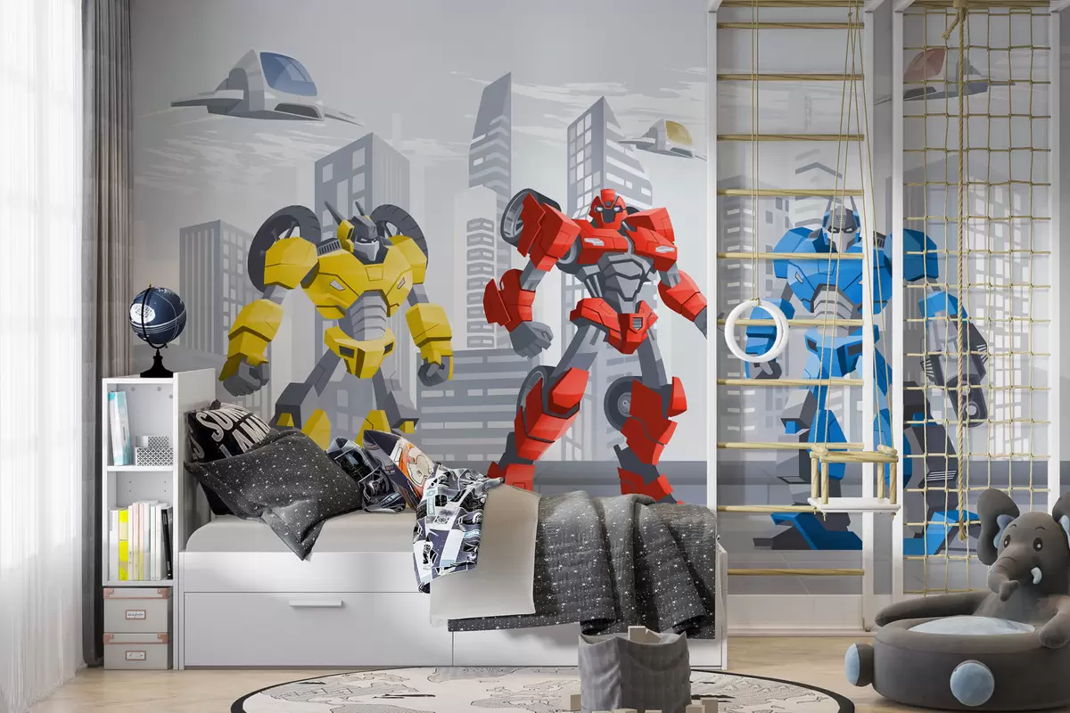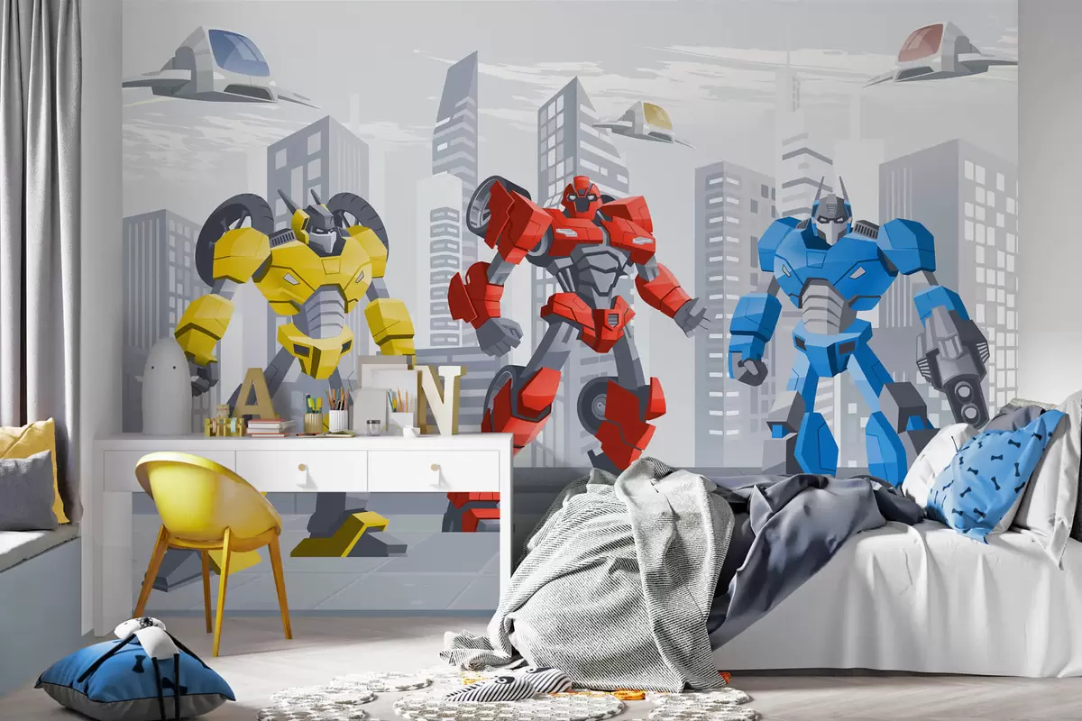 Murais de parede Robôs transformadores no cenário de uma cidade monocromática Nr. w04012