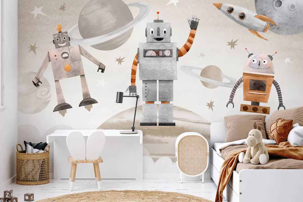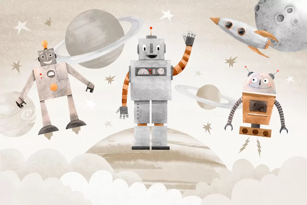 Murais de parede Robôs no espaço em estilo aguarela Nr. w04016v1
