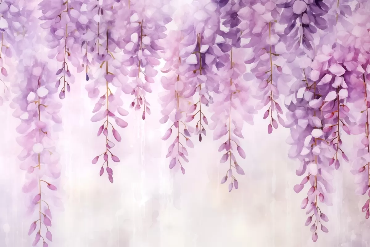 Murais de parede Composição delicada em aguarela com glicínias em cascata em tons suaves de lavanda e rosa, criando um ambiente tranquilo, Nr. w04034