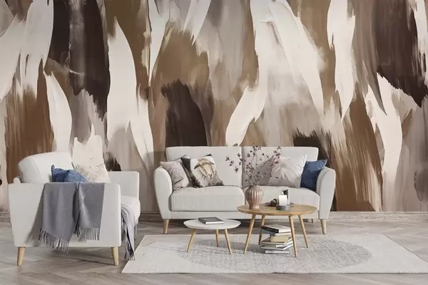 Murais de parede textura abstrata de tons quentes de terra - creme, caramelo e café - misturados em pinceladas fluidas cheias de profundidade e suavidade Nr. w04035v2