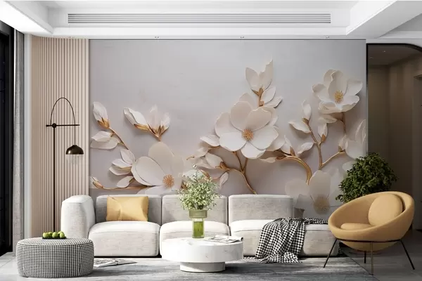 Murais de parede Flores elegantes em relevo com caules de tons suaves formam um cenário tranquilo e harmonioso Nr. w04039