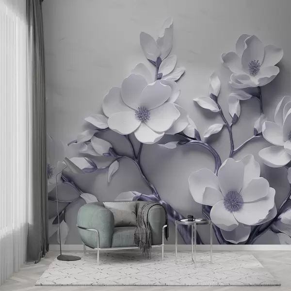 Murais de parede Desenho floral dimensional em tons suaves de branco e cinzento-violeta Nr. w04039v1