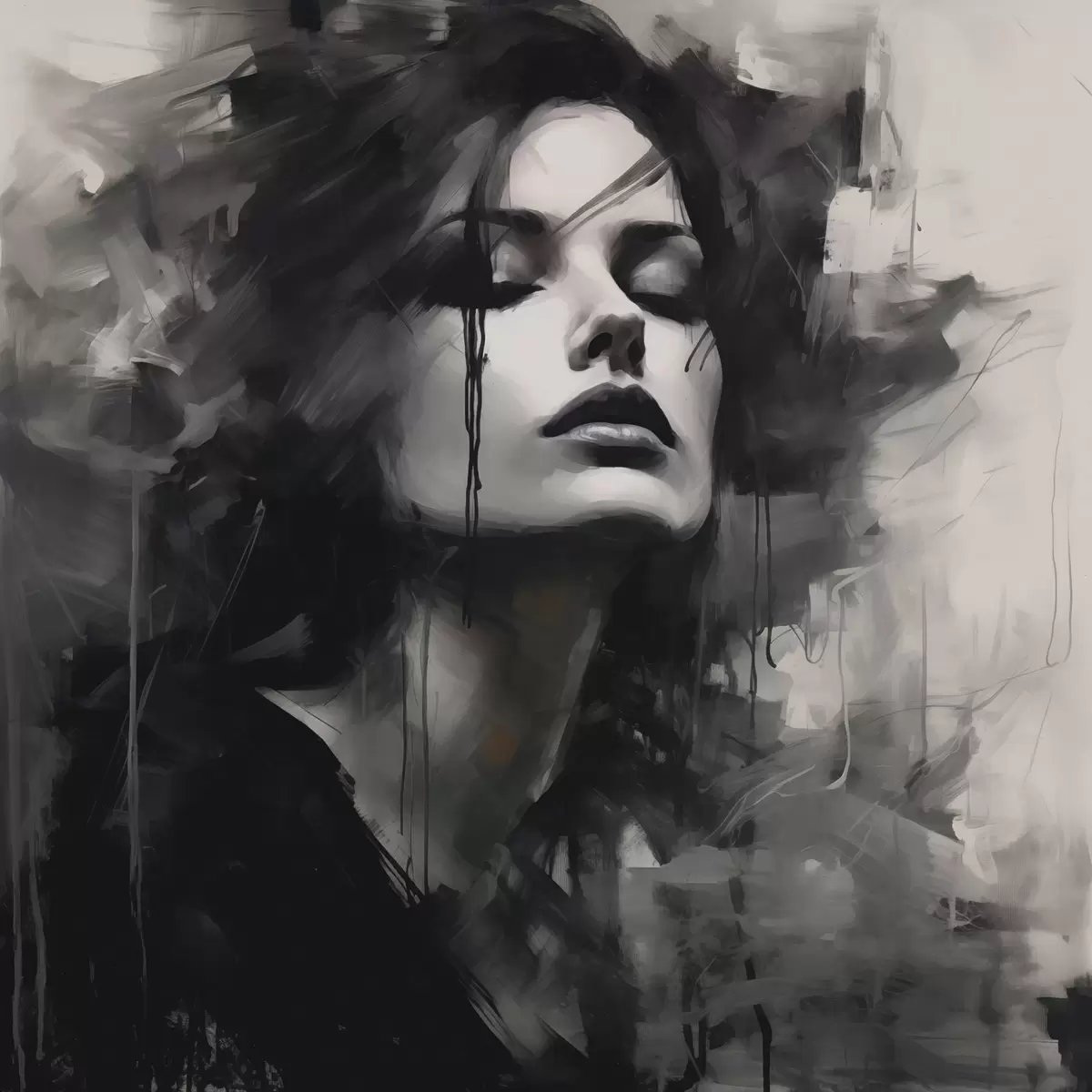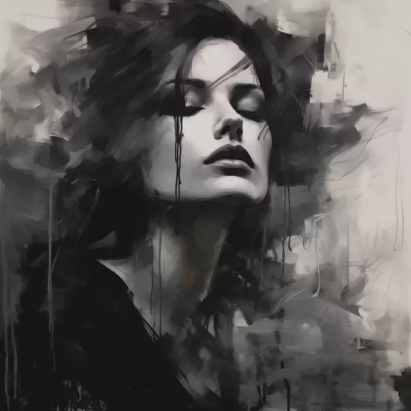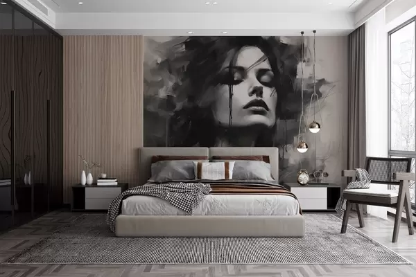 Murais de parede Retrato de uma mulher com vestuário cinzento e preto Nr. w04049