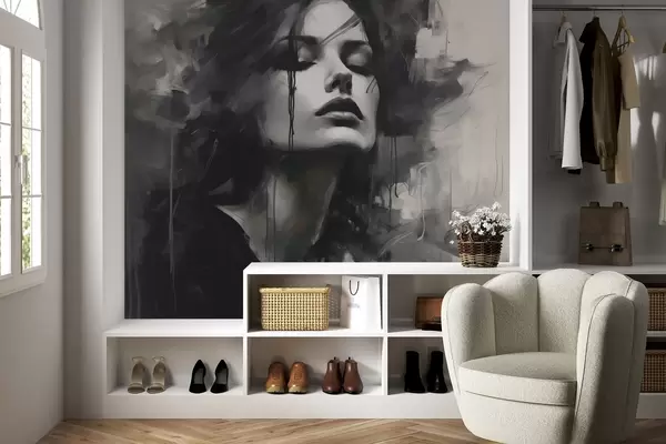 Murais de parede Retrato de uma mulher com vestuário cinzento e preto Nr. w04049