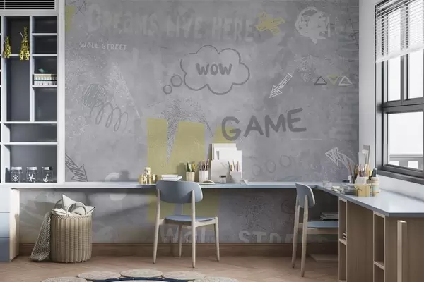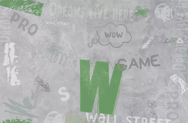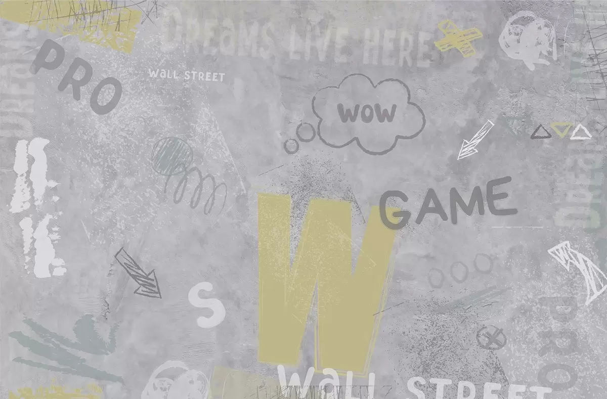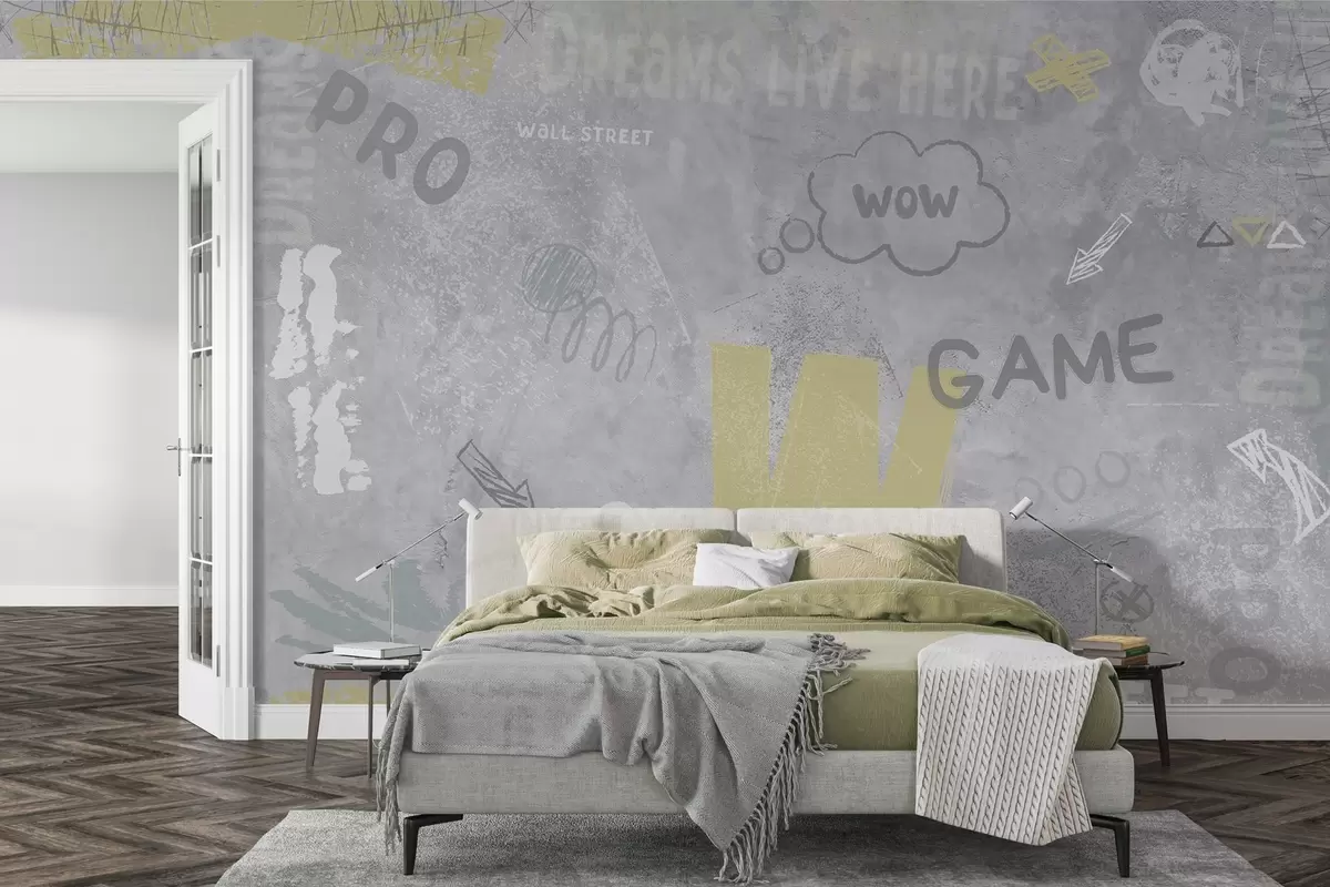 Murais de parede Desenho em estilo de arte de rua com inscrições a amarelo no fundo de um muro de betão Nr. w04056