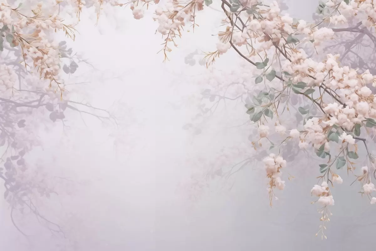 Murais de parede Ramos de árvore florida no nevoeiro Nr. w04062