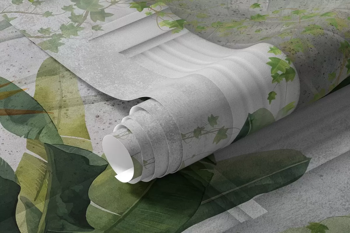 Murais de parede Parede de betão com arcos e plantas tropicais, florais, cores naturais Nr. w04065