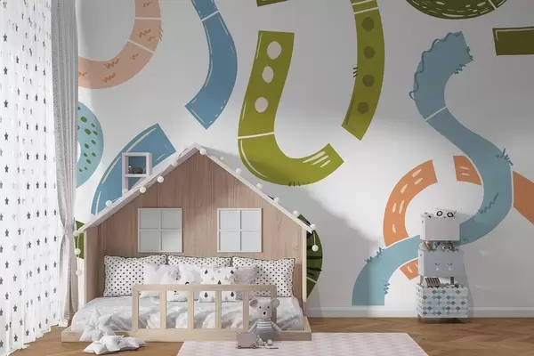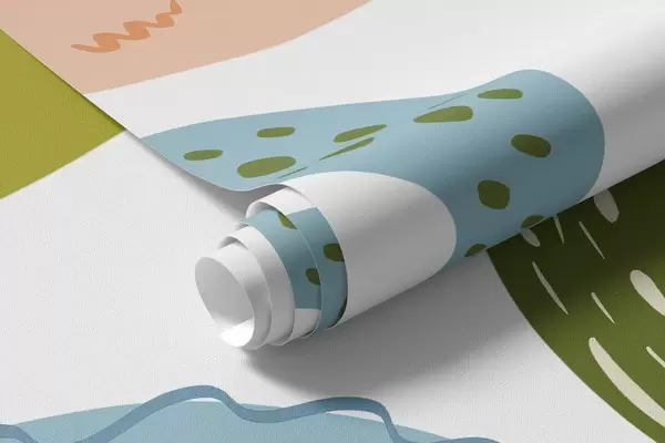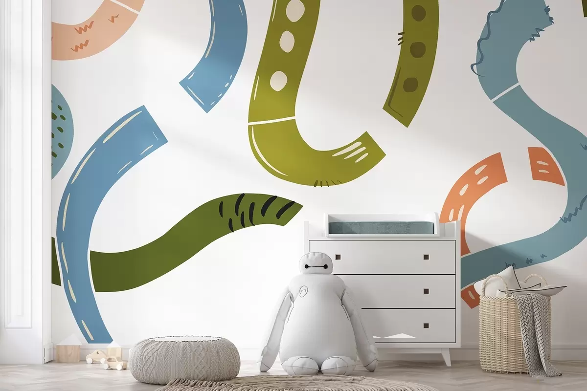 Murais de parede Desenhos abstractos, juvenis, rabiscos, verde, azul, rosa Nr. w04066v2