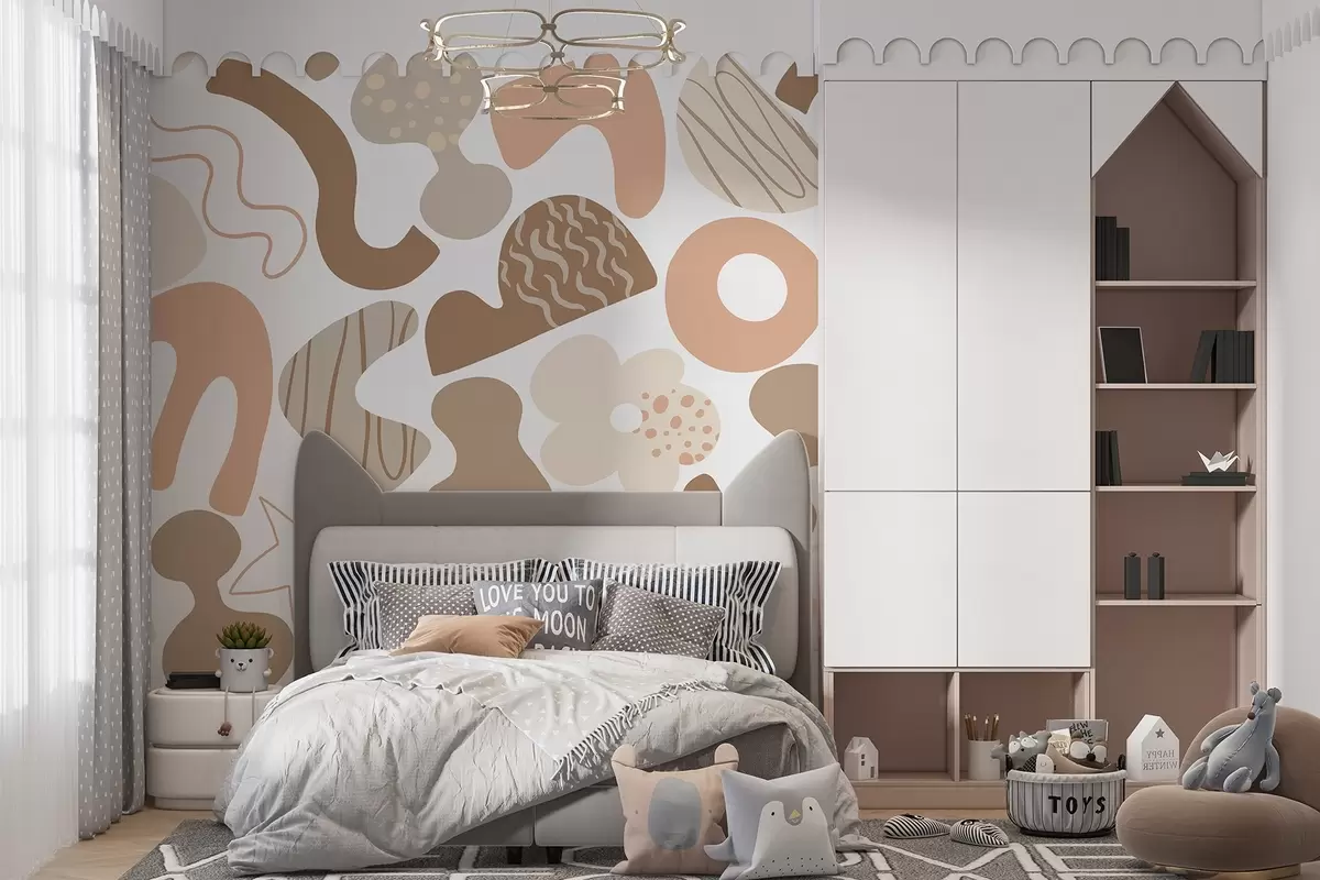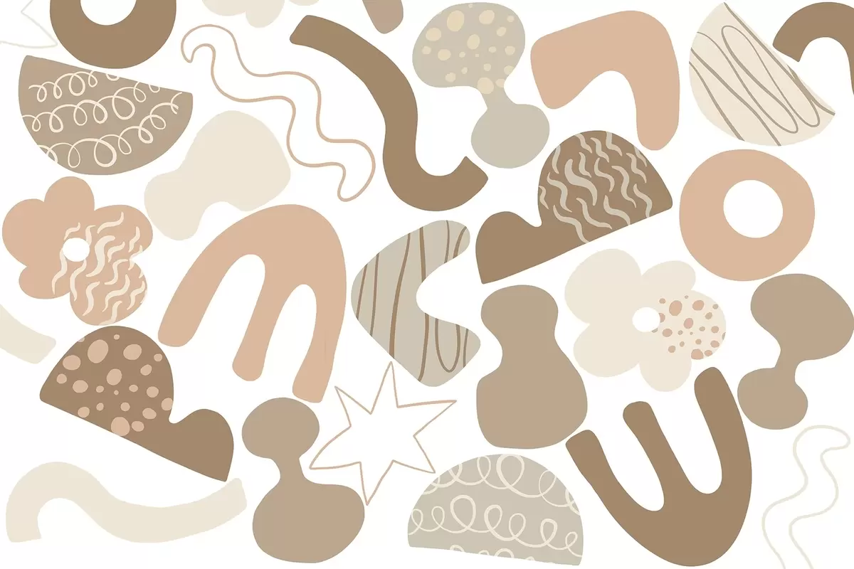 Murais de parede Desenho de figuras geométricas com rabiscos, juvenil, paleta de cores bege Nr. w04068
