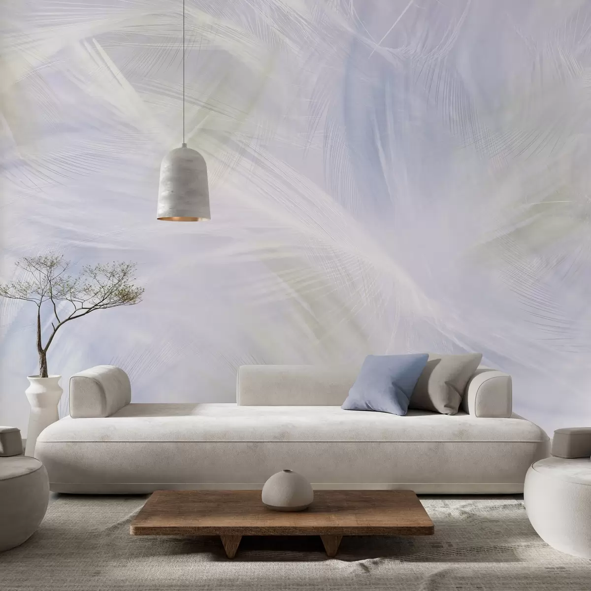 Murais de parede penas arejadas em tons de bege e azul Nr. w04071v1