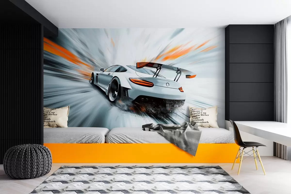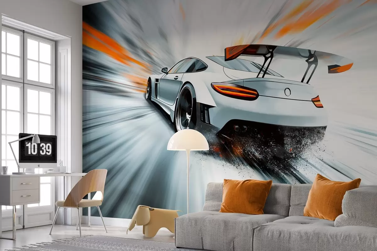 Murais de parede um automóvel desportivo dinâmico que corre pelo espaço Nr. w04074