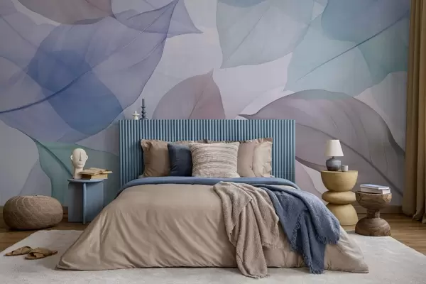 Murais de parede Folhas translúcidas com nervuras em tons de azul e castanho Nr. w04075