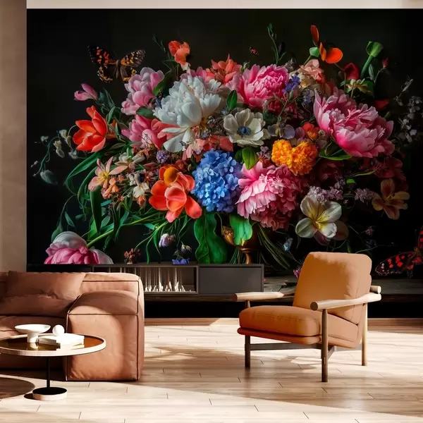 Murais de parede bouquet ao estilo da pintura a óleo holandesa do século XVII com uma luxuosa composição floral. Nr. w04078