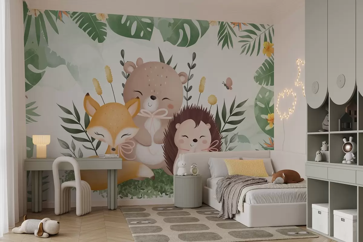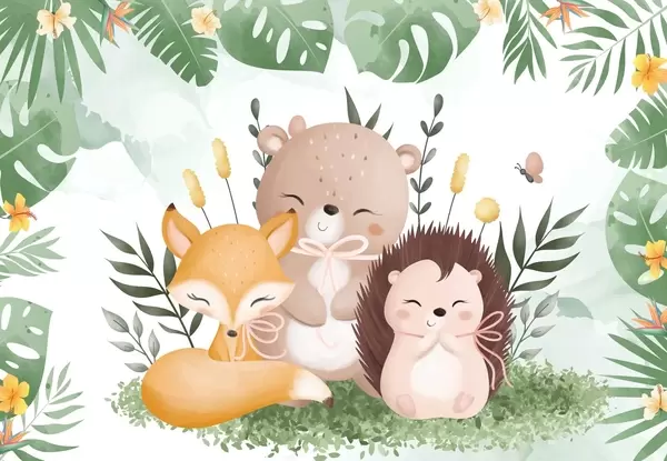 Murais de parede Raposa, urso e ouriço-cacheiro Nr. w04083