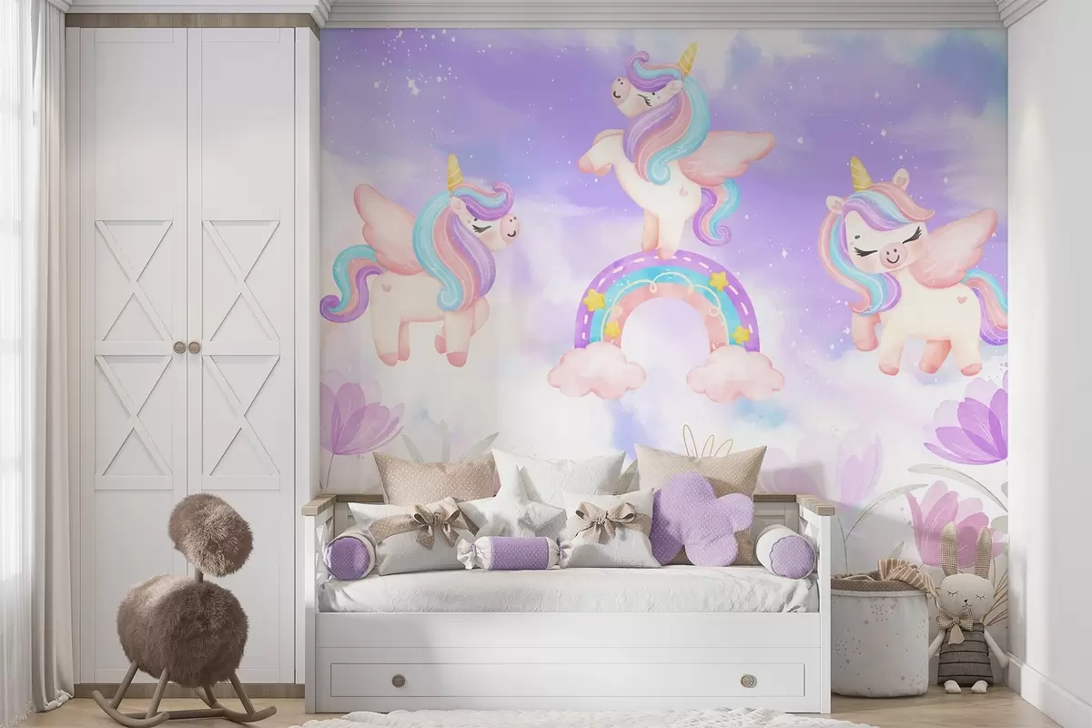 Murais de parede Unicórnios num arco-íris Nr. w04084