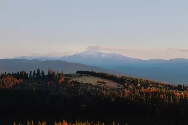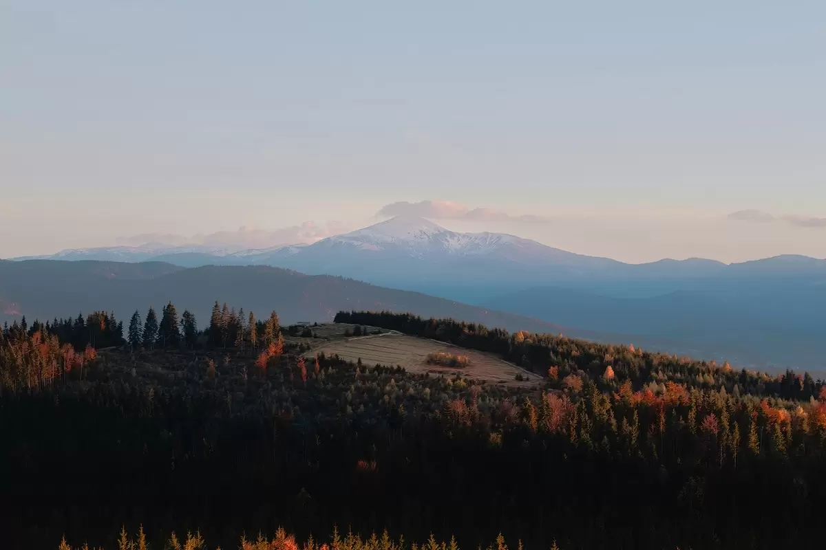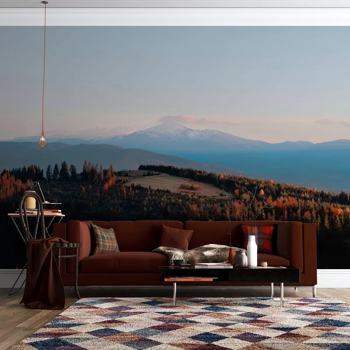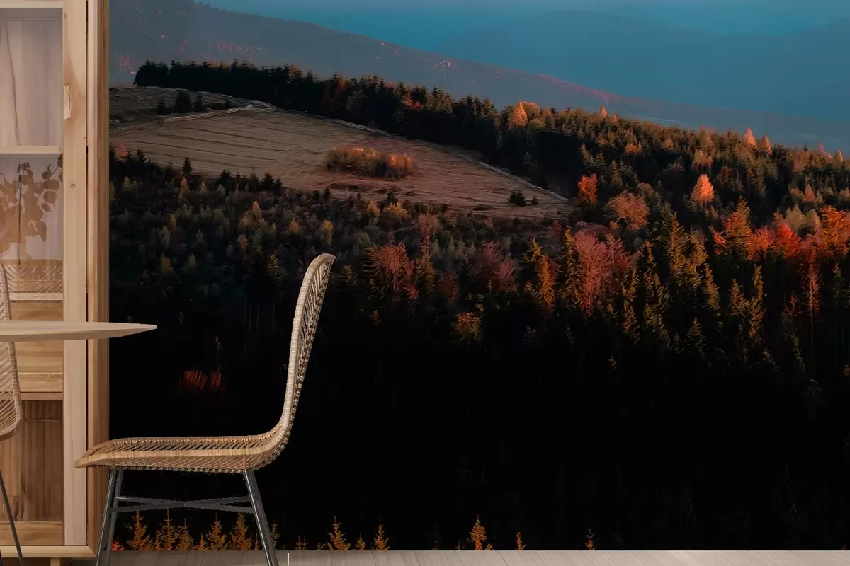 Murais de parede Montanhas dos Cárpatos, textura estilo óleo, floresta de outono, céu ao pôr do sol Nr. w04098