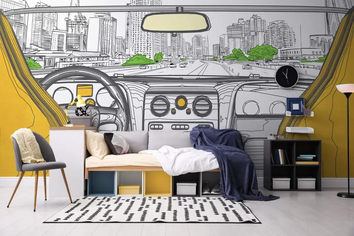 Murais de parede Vista de contorno a partir de um automóvel Nr. w04109
