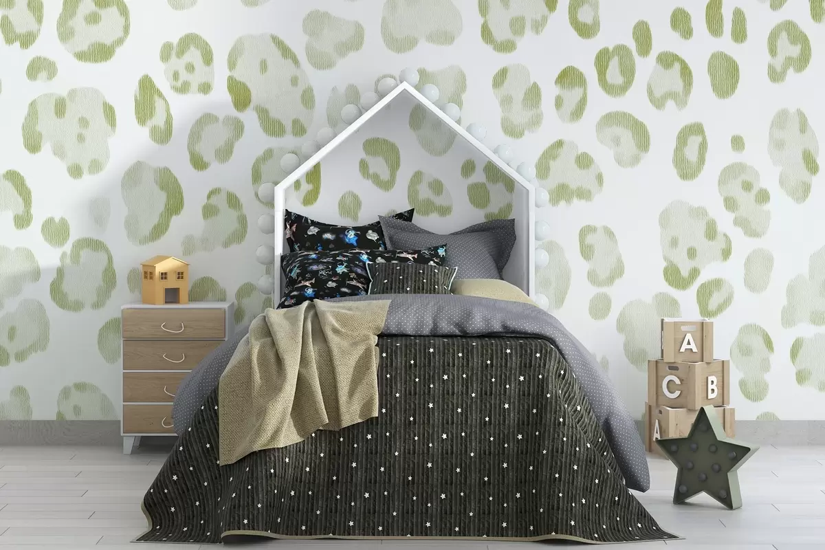 Murais de parede Estampado de leopardo, textura de lã, cor verde Nr. w04112v3