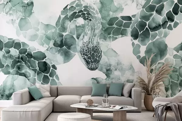 Murais de parede Silhueta de cobra, estilo aguarela, cores verdes Nr. w04113v2