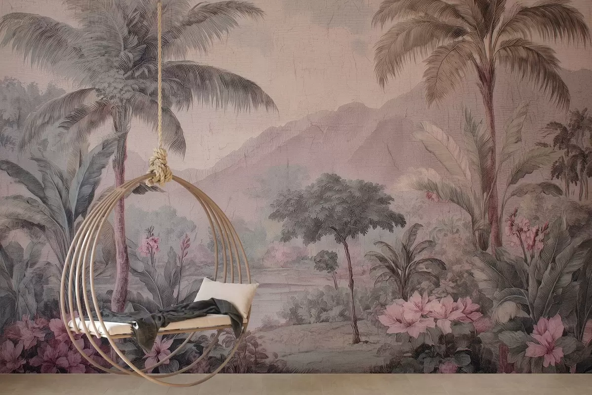 Murais de parede selva tropical em estilo retro Nr. w04139