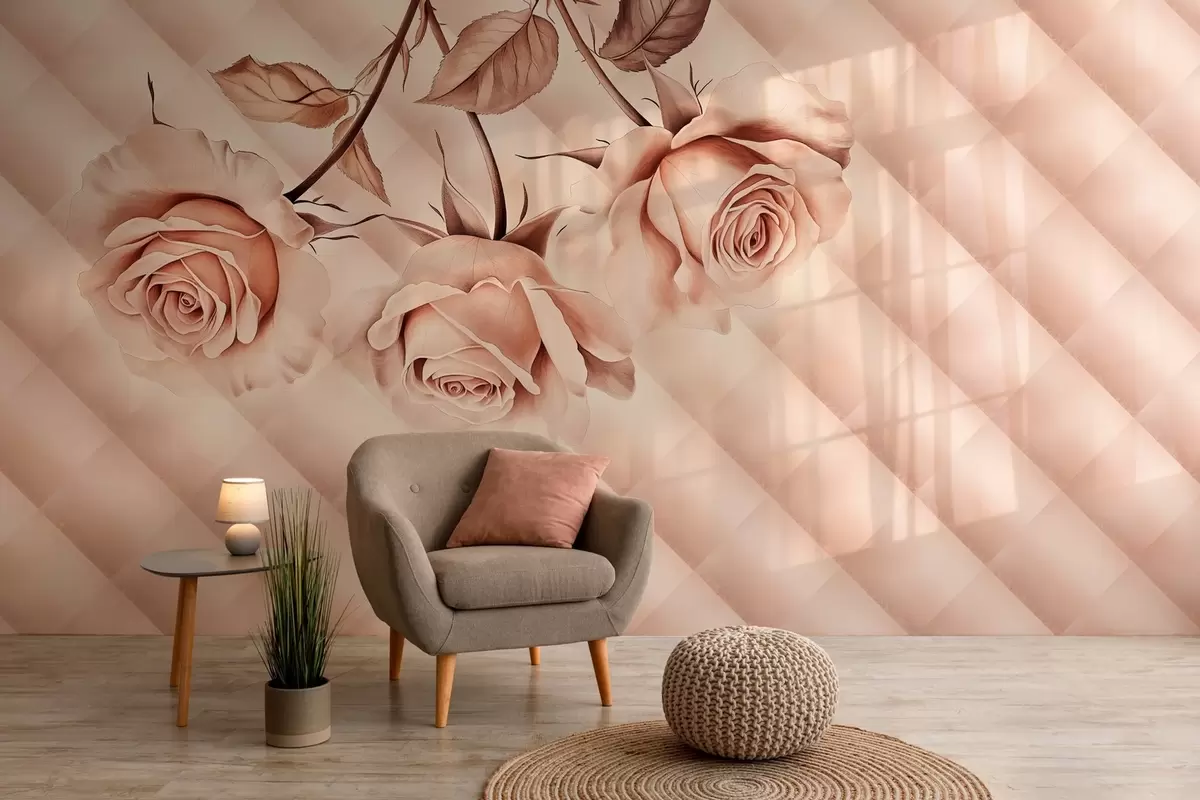Murais de parede rosas em pó em estilo retro Nr. w04141