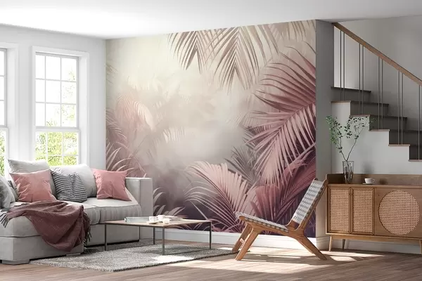 Murais de parede selva tropical com um tom cor-de-rosa Nr. w04142