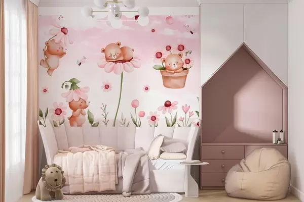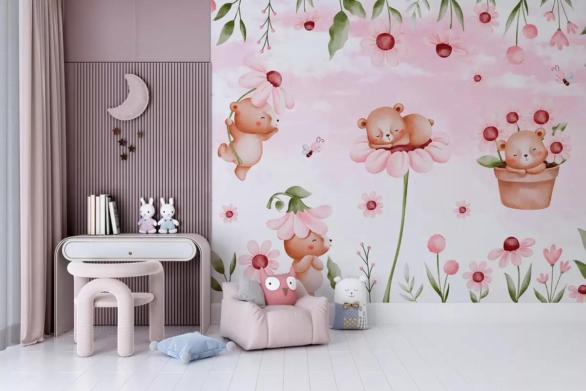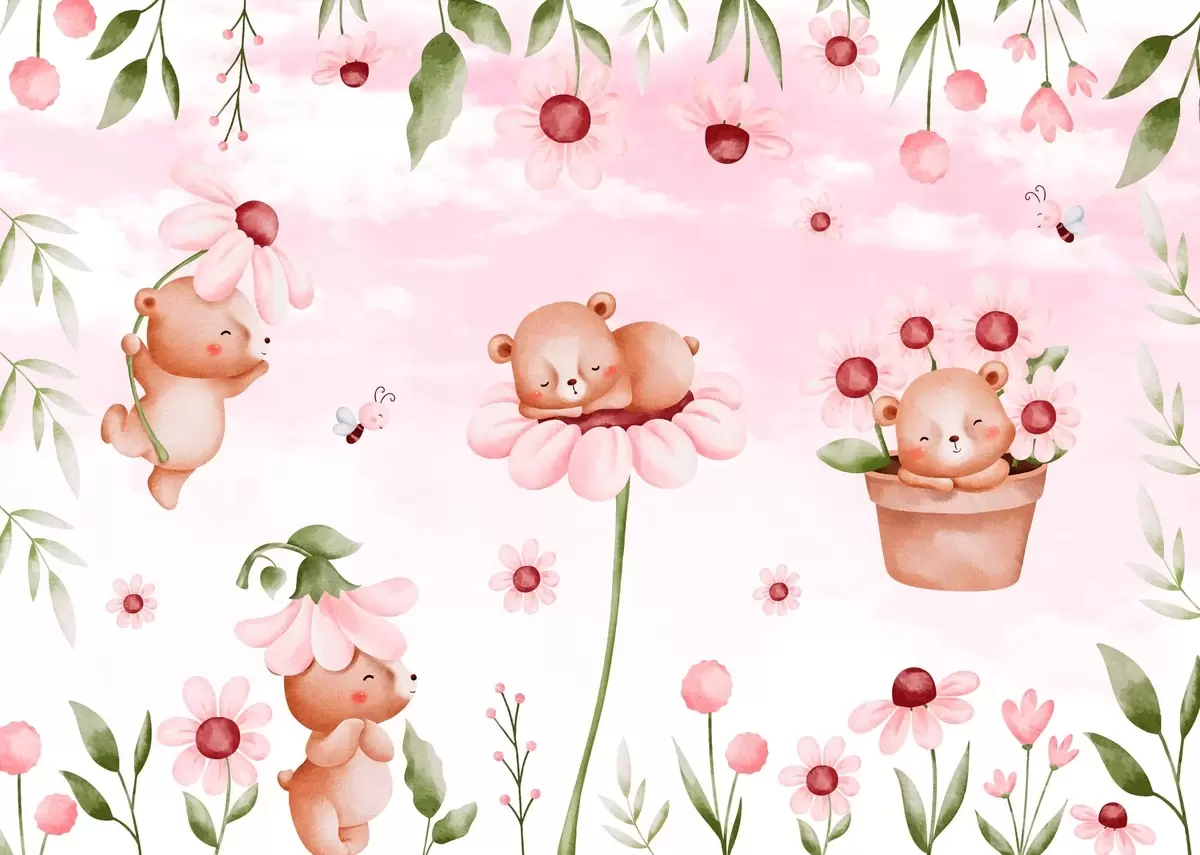Murais de parede Ursos com flores, animais de contos de fadas Nr. w04143