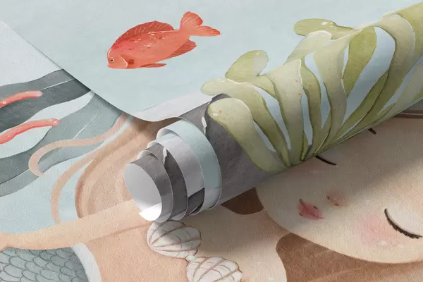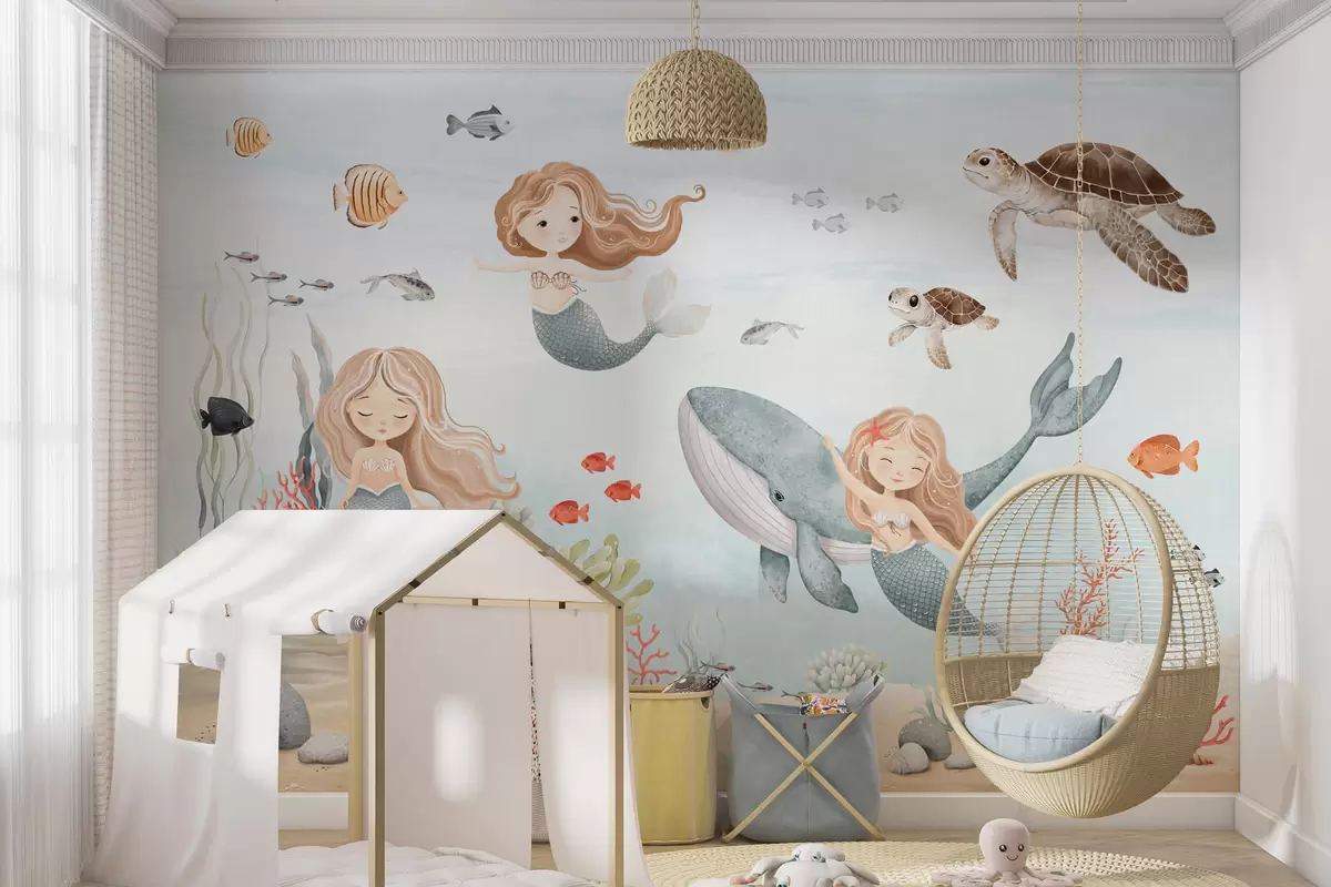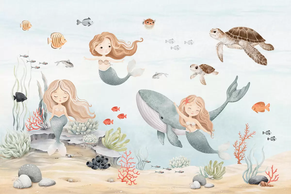 Murais de parede Mundo subaquático com sereias e peixes Nr. w04166