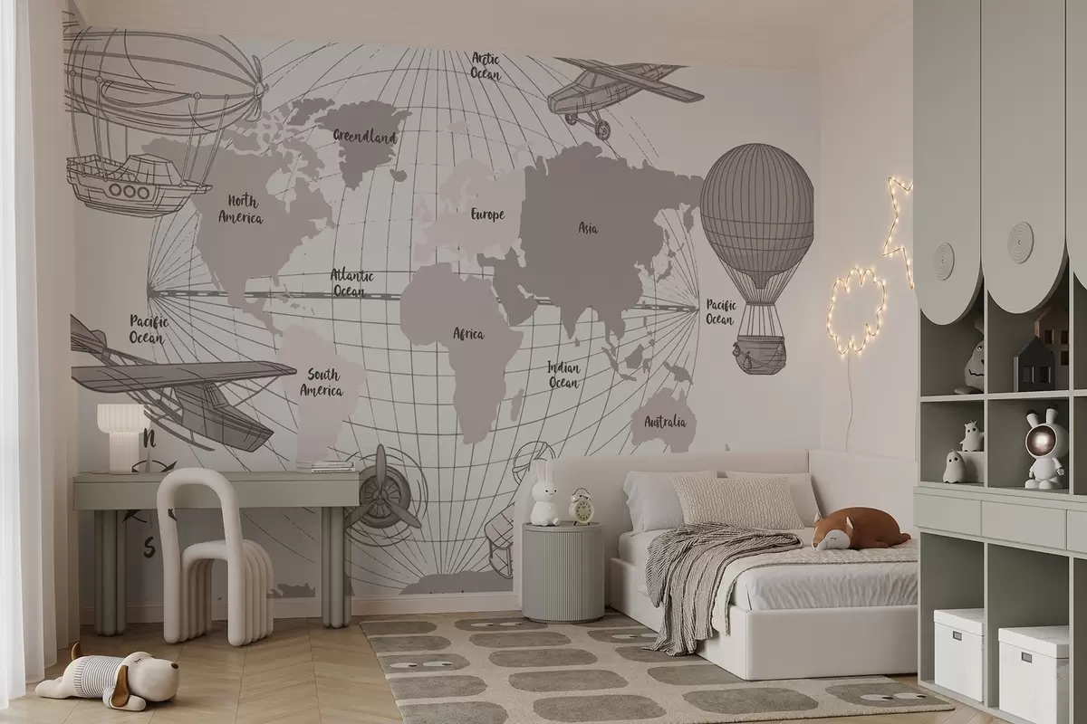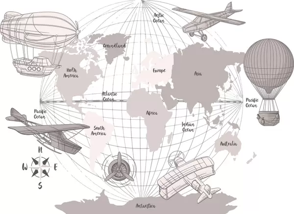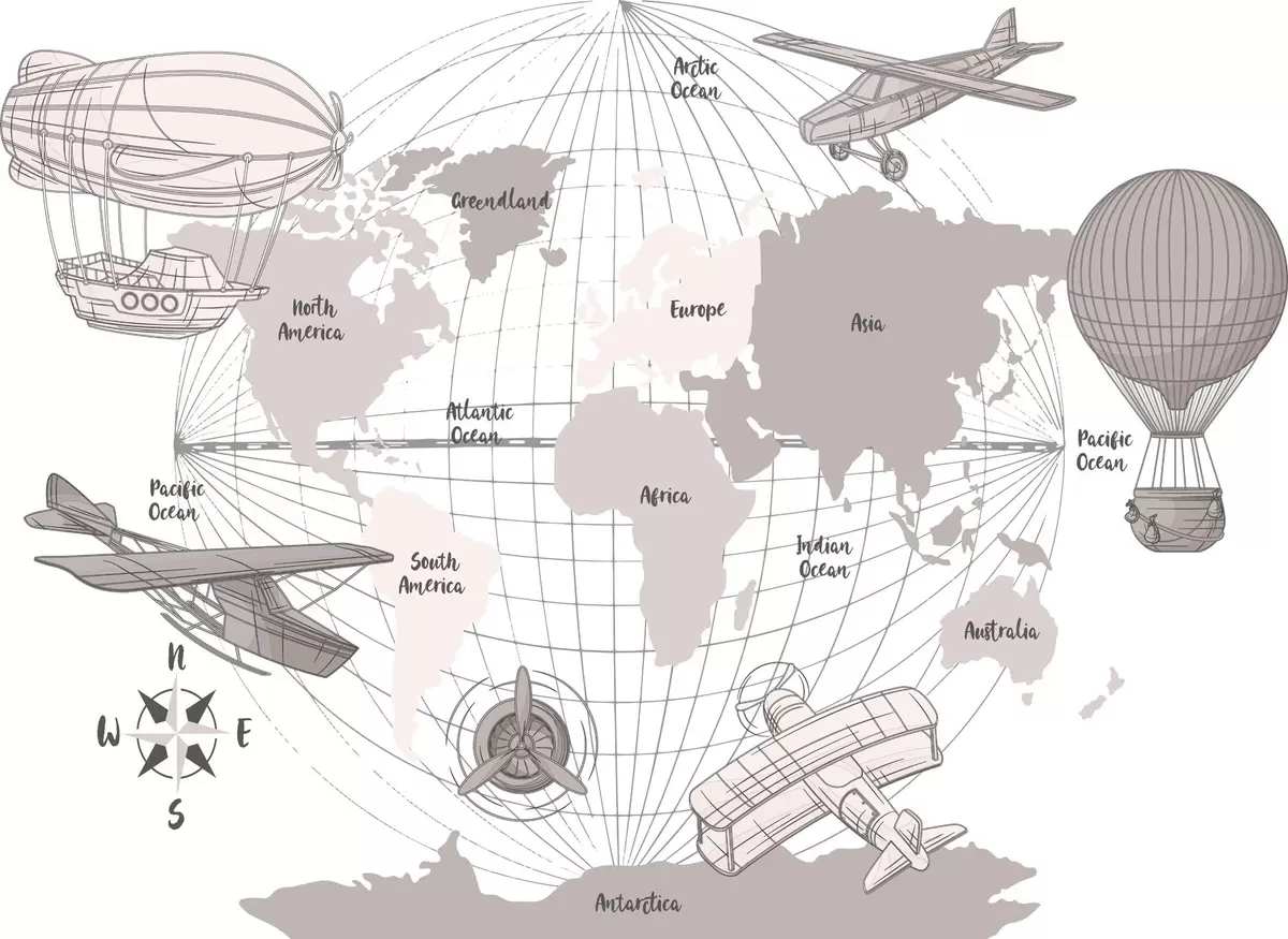 Murais de parede Mapa-mundo com aviões Nr. w04177